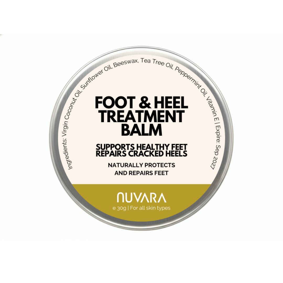 Formulated to soften, protect, and repair tired, dry feet, this Foot & Heel Treatment Balm delivers gentle antifungal and antibacterial support. A soothing blend of Tea Tree and Peppermint Oils helps keep feet fresh and protected, while Virgin Coconut Oil and Sunflower Oil deeply nourish and moisturize dry, cracked heels. Beeswax forms a protective barrier to lock in hydration, and Vitamin E supports skin repair, leaving feet feeling soft, revitalized, and comfortable all day.